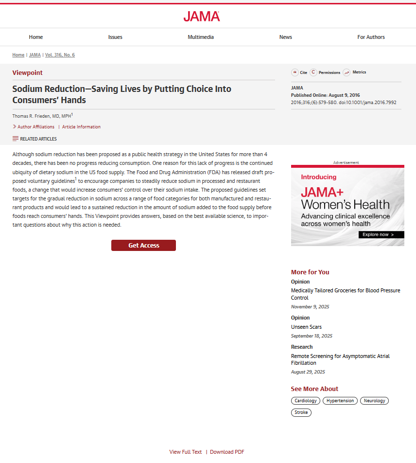 Sodium Reduction—Saving Lives by Putting Choice Into Consumers’ Hands