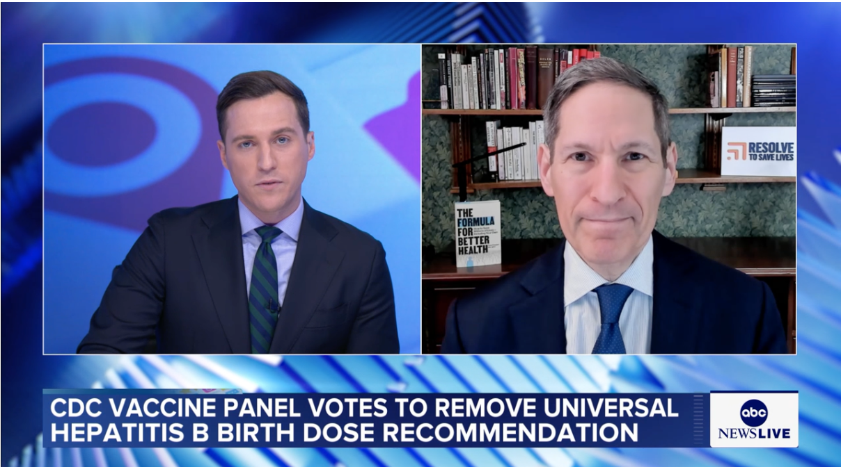 ABC News | Former CDC director Dr. Tom Frieden joins ABC News Live to talk about an advisory panel's vote to stop recommending universal hepatitis B vaccinations at birth.