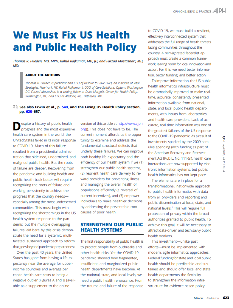 We Must Fix US Health and Public Health Policy